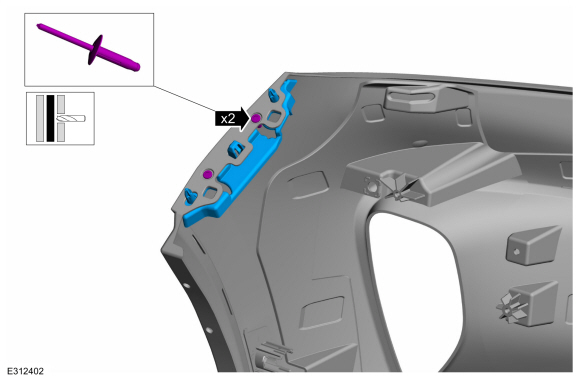 Удалите нажимные штифты, освободите выступы и снимите защитную накладку переднего бампера.