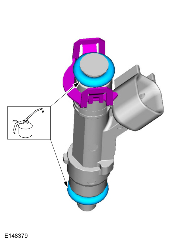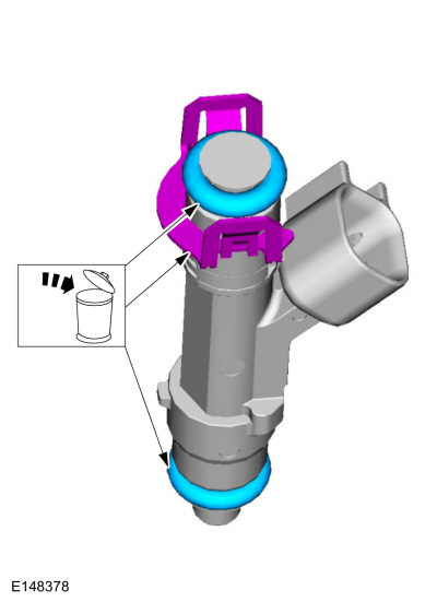 Установите новые уплотнительные кольца топливных форсунок и топливный клипсы форсунок. Смажьте новые уплотнительные кольца чистым моторным маслом.