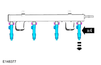 ПРИМЕЧАНИЕ: Убедитесь, что установлены новые уплотнительные кольца топливных форсунок и новые фиксаторы топливных форсунок.