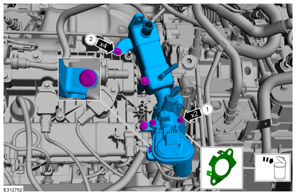Ford Escape: Контроль выбросов двигателя / Снятие и установка — Охладитель системы рециркуляции отработавших газов (EGR)