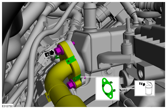 Смажьте новые уплотнительные кольца охладителя EGR небольшим количеством моторного масла.