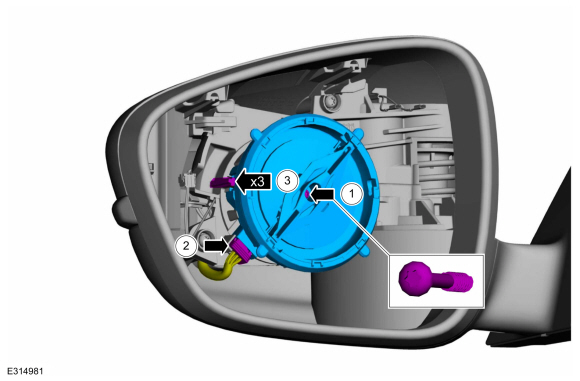 Отсоедините электрические разъемы стекла наружного зеркала заднего вида.