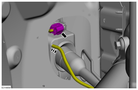 Отсоедините электрический разъем нижнего датчика привода задней поднимающейся двери без помощи рук...