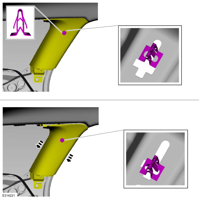 УВЕДОМЛЕНИЕ: Не используйте электроинструменты для снятия или установки гайки стойки стабилизатора. Повреждение шаровых шарниров тяги стабилизатора поперечной устойчивости и ботинки могут произойти.
