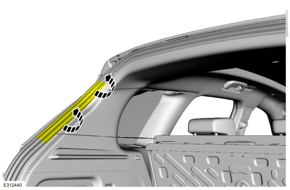 УВЕДОМЛЕНИЕ: Не используйте электроинструменты для снятия стабилизатора поперечной устойчивости. соединительная гайка. Повреждение шарового шарнира тяги стабилизатора поперечной устойчивости или пыльника может происходить.