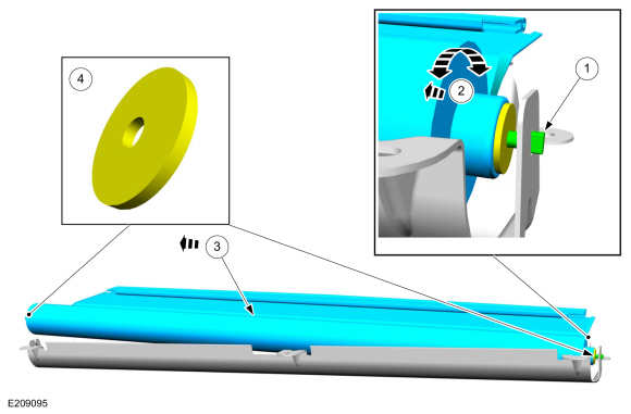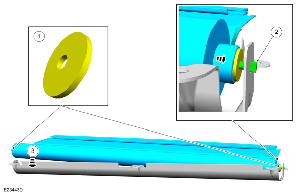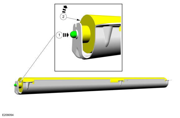 Перед установкой щита в корпус щита.ПРИМЕЧАНИЕ: После вставки прорезанного конца экрана в корпус защитного экрана, осторожно поверните и прижмите защитный экран к конец с прорезями (корпус с прорезями будет препятствовать вращению вала) пока не ослабнет натяжение, то не позволяйте щиту разматываться на вал при установке щита в сборе на автомобиль.