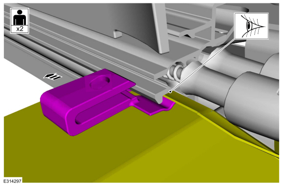 Оттяните поперечину от механизма приводного троса. удерживая выступы с обеих сторон до тех пор, пока поперечина не освободит диск фиксаторы тросового механизма и поверните поперечину вниз.