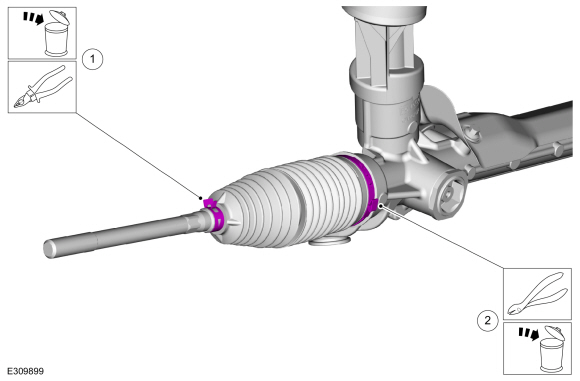 Снимите и выбросьте внутренний хомут чехла рулевого механизма.