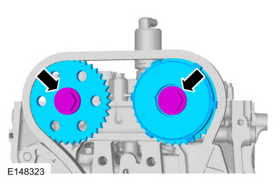 Использование лыски на распределительном валу для предотвращения вращения, затяните болты на фазовращателе распределительного вала и звездочке. Затянуть в 2 этапа.