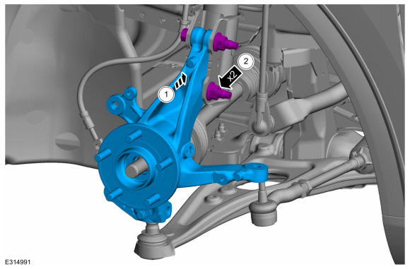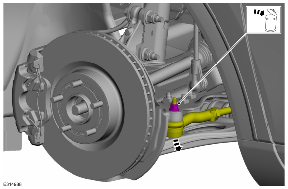 УВЕДОМЛЕНИЕ: Не используйте молоток, чтобы отделить конец рулевой тяги от может привести к повреждению поворотного кулака или повреждению поворотного кулака.