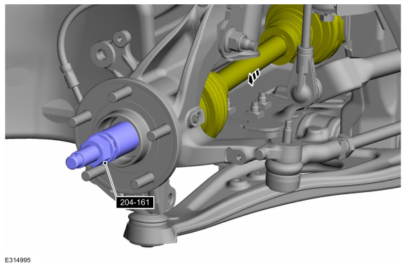 Используя специальный инструмент, выпрессуйте полуось из ступичный подшипник и ступица. Поддерживайте полуось в горизонтальном положении.