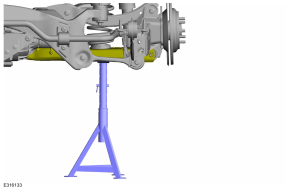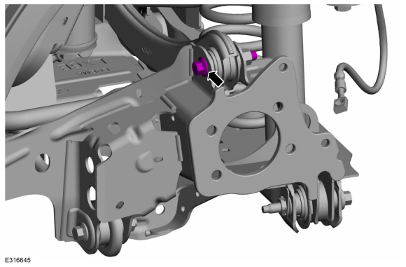 УВЕДОМЛЕНИЕ: Затяните крепления подвески с весом автомобиль на колесах и шинах или используйте подходящий домкрат, чтобы поднять подвеска до высоты бордюра или повреждение втулок.