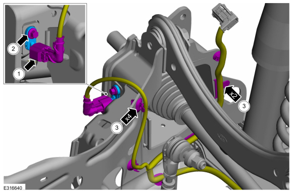 Снимите болт датчика скорости вращения колеса и отложите датчик скорости вращения колеса в сторону.