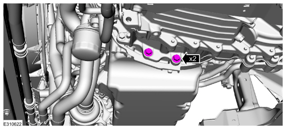 Снимите левые болты с двигателя.