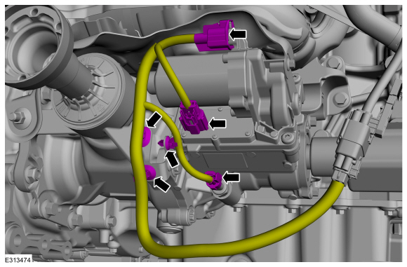 Отсоедините электрические разъемы и снимите фиксаторы жгута проводов.