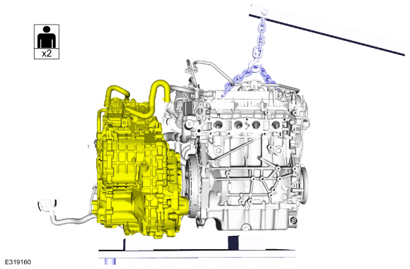 С помощью подъемника силового агрегата и регулируемой рукоятки закрепите двигатель на подъемном столе.