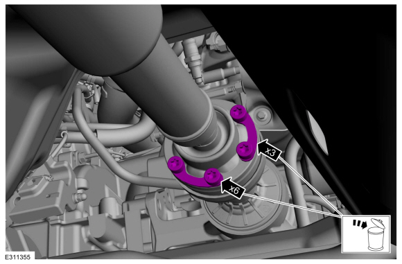 Снимите болты опорного кронштейна PTU и опорный кронштейн PTU.