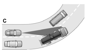 C - Могут быть проблемы с обнаружением транспортных средств впереди во время движения входе и выходе из поворота или поворота дороги.