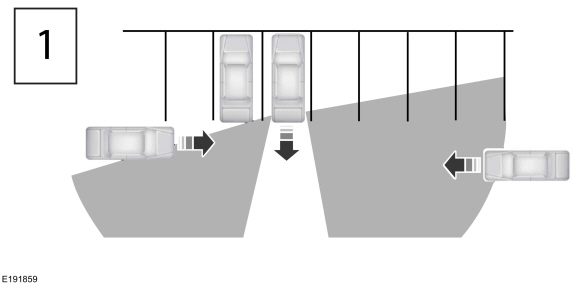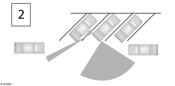 Ан соседнее припаркованное транспортное средство или объект может повлиять на способность системы обнаруживать приближающиеся транспортные средства или велосипеды (см. рис. 1). Парковка в экстремальные углы могут еще больше повлиять на способность системы обнаруживать приближающихся транспортных средств или велосипедов (см. рис. 2).