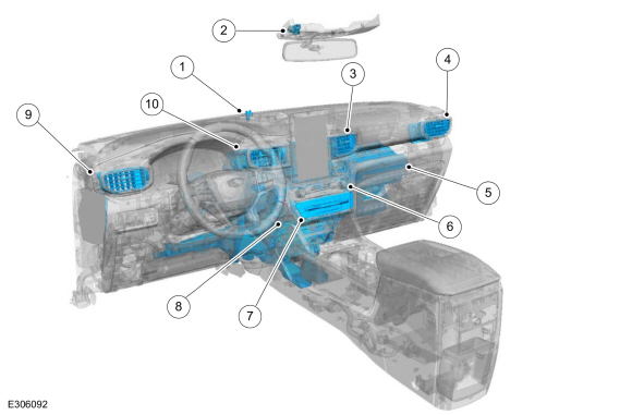 | 11 | Датчик температуры нагнетаемого воздуха в пространстве для ног пассажира |