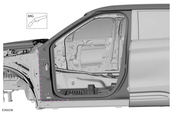 Ford Explorer: Ремонт листового металла боковой панели / Снятие и установка — внешняя панель передней стойки