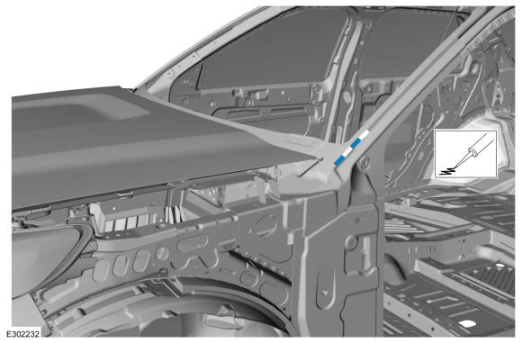 Снимите облицовку стойки ветрового стекла.