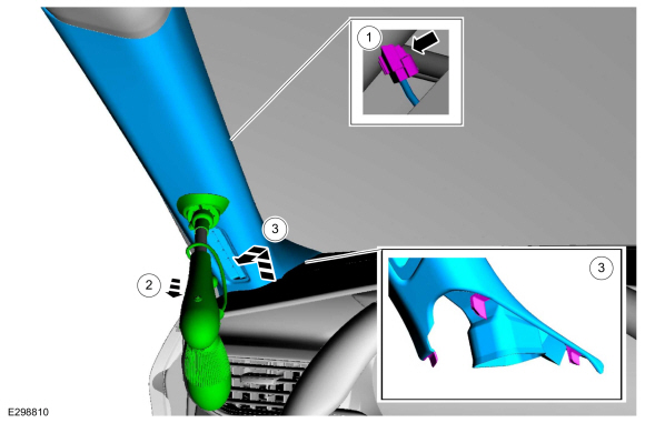 Поднимите вверх и назад и сдвиньте панель отделки передней стойки с вала прожектора.