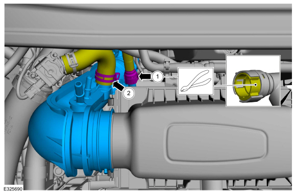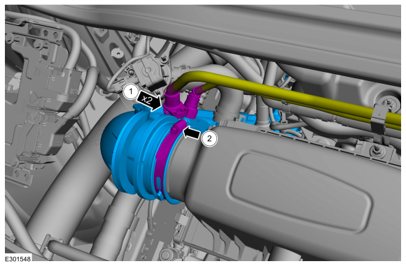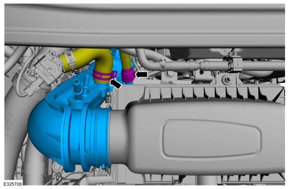 Ford Explorer: Распределение и фильтрация впускного воздуха — 2,3 л EcoBoost (201 кВт/273 л. с.) / Снятие и установка — выпускная труба воздухоочистителя