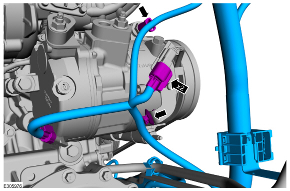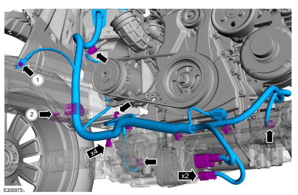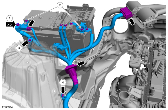 Ford Explorer: Аккумулятор, монтаж и кабели / Снятие и установка — Кабели аккумулятора — 2,3 л EcoBoost (201 кВт/273 л.с.)