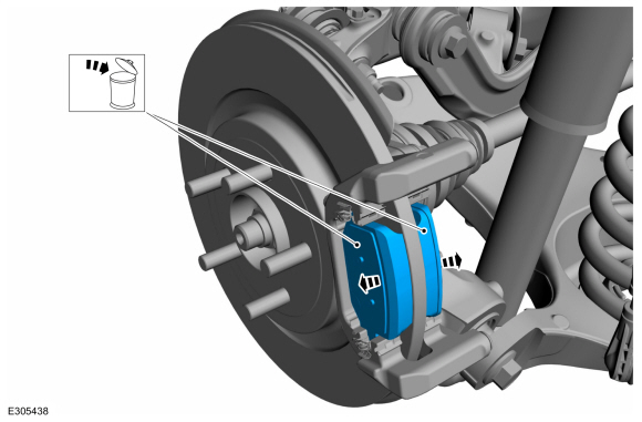 УВЕДОМЛЕНИЕ: Тормозные колодки с клеем на изоляторе только одноразовое использование. Когда тормозные колодки отделены от тормоза суппорта, необходимо установить новые тормозные колодки, чтобы предотвратить шум при торможении и содрогаться.
