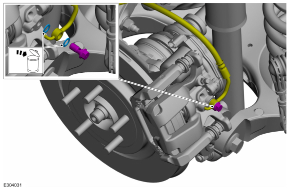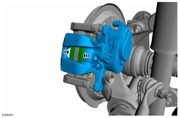 УВЕДОМЛЕНИЕ: Убедитесь, что тормозной шланг не перекручен при установка тормозного суппорта или повреждение гибкого тормозного шланга может происходить.