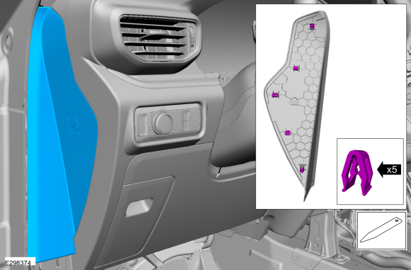 См.: Панель обивки передней стойки (501-05 Внутренняя отделка и украшения, Снятие и установка).