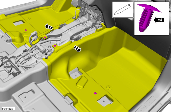 Удалите нажимные штифты и отложите напольный ковер в сторону.