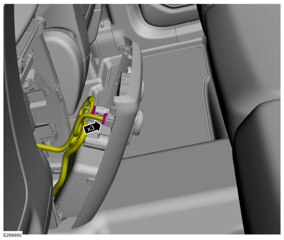 Отсоедините электрические разъемы и снимите заднюю панель отделки напольной консоли.