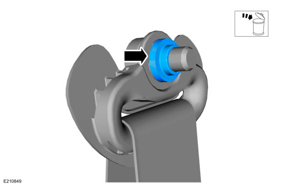 Снимите и выбросьте прокладку с втягивающего устройства переднего ремня безопасности и болт D-образного кольца натяжителя.