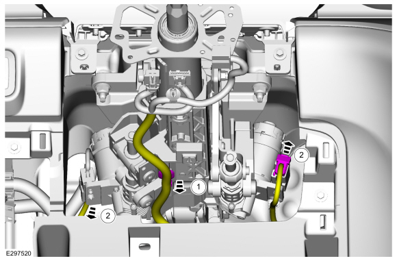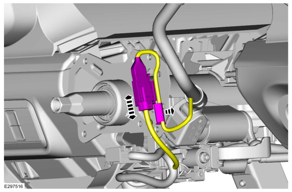 Снимите кожухи рулевой колонки.УВЕДОМЛЕНИЕ: Убедитесь, что рулевое колесо не вращается, иначе часовая пружина может быть повреждена.