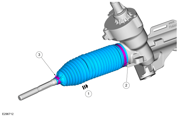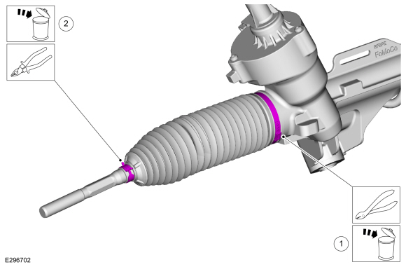 УВЕДОМЛЕНИЕ: При обслуживании внутренних рулевых тяг установите новый чехол сильфона. и зажимы. Ботинки и зажимы предназначены для обеспечения герметичности герметизировать и защитить внутренние компоненты рулевого механизма. Если уплотнение негерметично, вакуум, создаваемый при повороте, попадание воды и загрязнений в редуктор, что приводит к выходу из строя рулевого управления компоненты шестерни. Запрещается использовать стяжки-молнии, так как они не обеспечивают герметичное уплотнение.