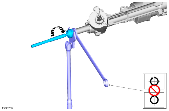 УВЕДОМЛЕНИЕ: Установите рулевой механизм в центральное положение и удерживая рулевую рейку, ослабьте рулевую тягу. Используйте гаечный ключ соответствующего размера на плоской поверхности/зубцах стойки, чтобы противостоять вращения и для предотвращения повреждений при снятии рулевой тяги.