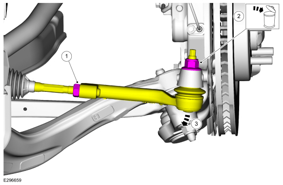 УВЕДОМЛЕНИЕ: Не используйте молоток для отделения внешнего конец рулевой тяги от шпинделя колеса или повреждение шпинделя колеса может результат.