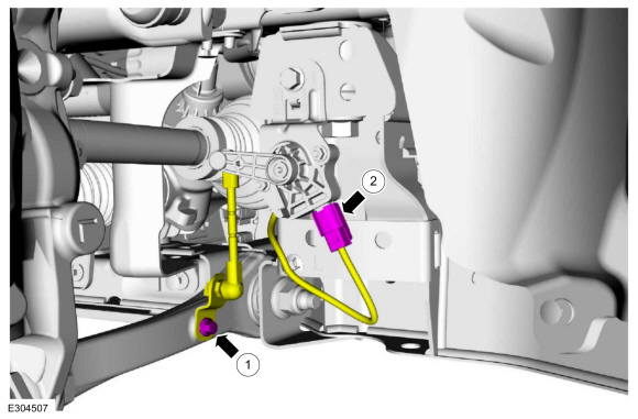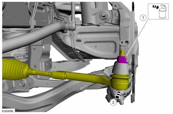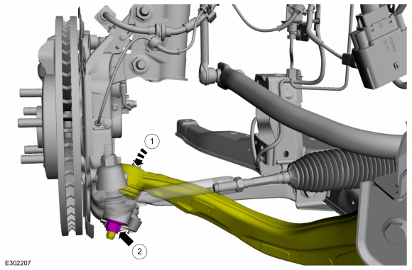 УВЕДОМЛЕНИЕ: Не используйте молоток, чтобы отделить конец рулевой тяги от может привести к повреждению поворотного кулака или повреждению поворотного кулака.