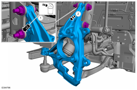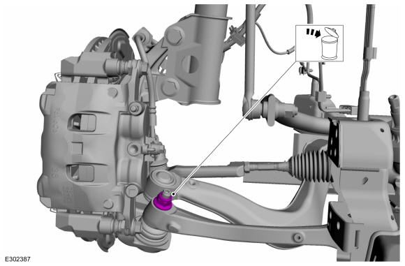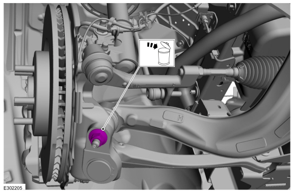 УВЕДОМЛЕНИЕ: Не используйте электроинструменты для снятия или установки гайка наружной части нижнего рычага. Повреждение шарового шарнира или уплотнения шарового шарнира может происходить.