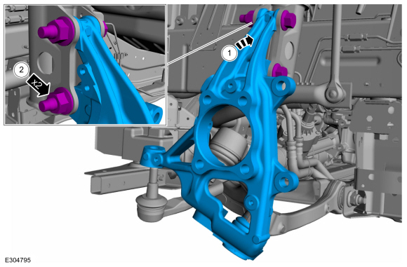 УВЕДОМЛЕНИЕ: Крепления подвески являются важными деталями, влияющими на работоспособность жизненно важных узлов и систем. Выход из строя этих креплений может привести к значительным расходам на обслуживание. Используйте одинаковые или эквивалентные детали, если замена необходима. Не используйте запасную часть меньшего качество или альтернативный дизайн. Затяните крепления, как указано.