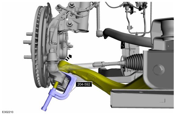 УВЕДОМЛЕНИЕ: Будьте осторожны при освобождении нижнего рычага и колеса сустав в положение покоя. Повреждение шарового шарнира или шара возможно уплотнение стыка.