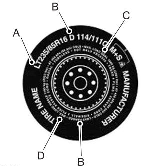 Поставщики шин могут иметь дополнительную маркировку, примечания или предупреждения, такие как стандартные нагрузочные или радиальные бескамерные.