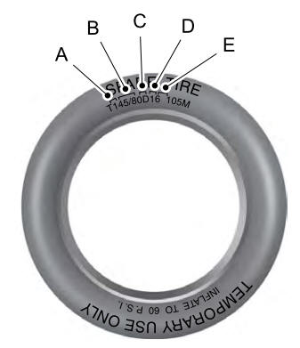 Примечание. Размер временных шин для вашего автомобиля может отличаться от указанного. пример. Классы качества шин не относятся к этому типу шин.