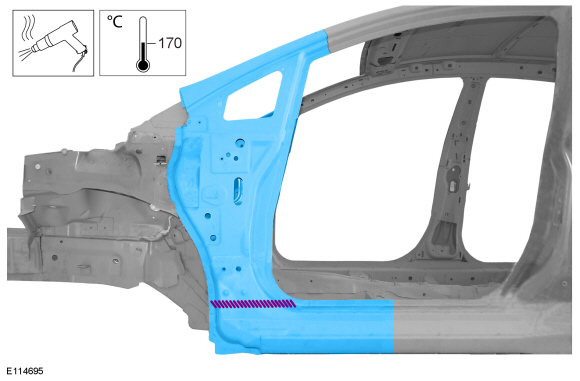Ford Fiesta: Ремонт листового металла боковой панели / Наружная панель передней стойки. Снятие и установка