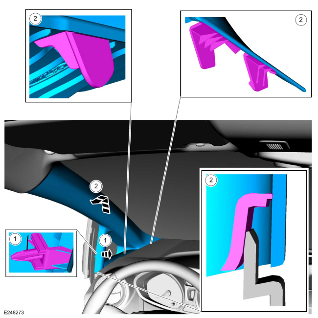Во время установки убедитесь, что все выступы панели отделки передней стойки полностью зашли на место.