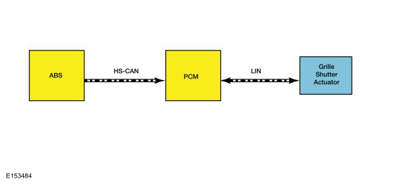 PCM сообщает желаемое положение (открыто или закрыто) затвор решетки на основе различных входных данных PCM (скорость автомобиля, охлаждающая жидкость температура, температура окружающей среды, давление в системе кондиционирования и т. д.). ПКМ связывается с приводом заслонки решетки через LIN. LIN поддерживает двунаправленная связь между приводом жалюзи решетки и PCM, позволяющий приводу заслонки решетки сообщать положение и информация о неисправности в PCM.