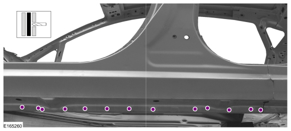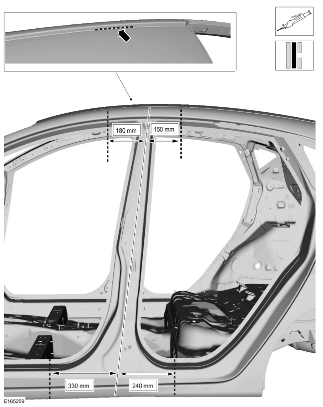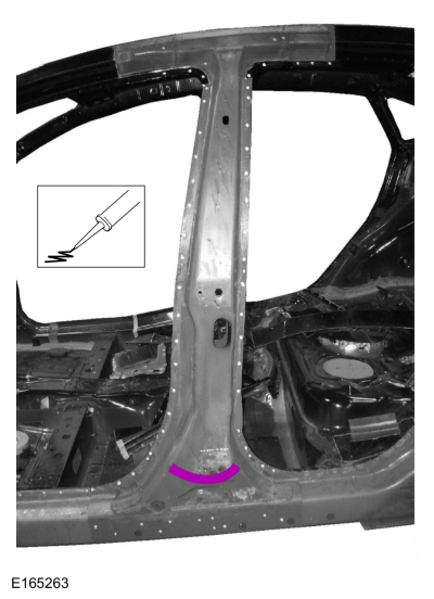 Ford Fiesta: Ремонт листового металла боковой панели / Наружная панель средней стойки. Снятие и установка