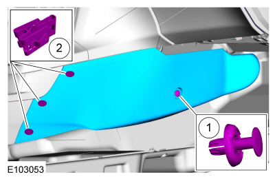 Снимите нажимной штифт, освободите зажимы и снимите правую панель отделки напольной консоли...